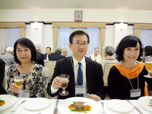 ヘボンクラブにて。左から経済学科同期の藤澤浩子さん(法政大学非常勤講師、学術博士)、