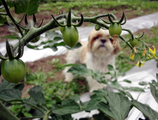 今夏はひどい空梅雨のため、既に水不足が深刻ですが、乾燥した土地を好むトマトはどうやら大豊作の予感。がんばれトマト! |