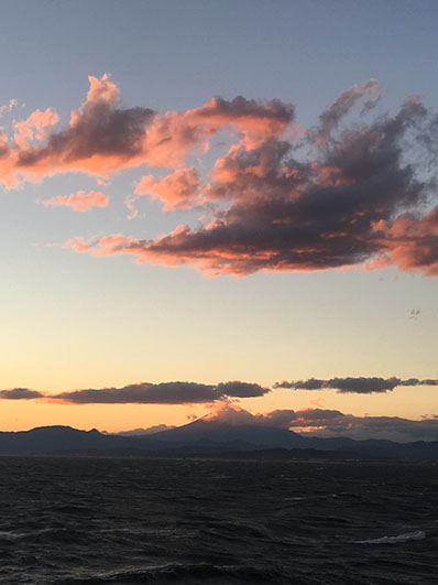 風の強い日でしたが、江の島から見る富士山はドラマティック。