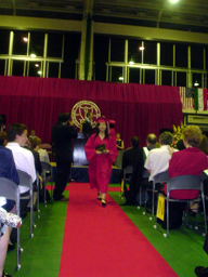 卒業証書を受け取り、花道を歩いて