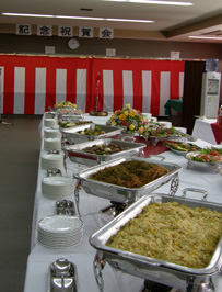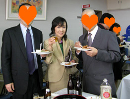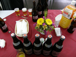 学位記授与式終了後の祝賀会会場。右写真に写っているのは、いわゆるひとつの般若湯(笑)