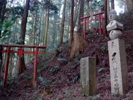(右)ここにも鳥居が。折れた卒塔婆の横に寄り添うようにして、新しい卒塔婆も建てられていました