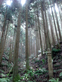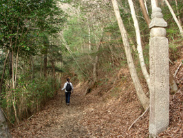 この間、一町(約109m)ごとに「町石(ちょういし)」と呼ばれる石の五輪塔(卒塔婆)が建てられており、それぞれの石には一から百八十までの通し番号が彫ってあります。この数字を見ながら進めば、自分が今どのあたりにいるかを把握できるわけです。 |