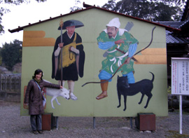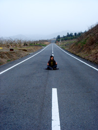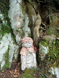 (左)路傍の可愛いお地蔵さん♪ (右)交通量ゼロの道の真ん中で瞑想中(?)