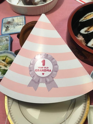帽子には 1 Year Old Grandma の文字が。