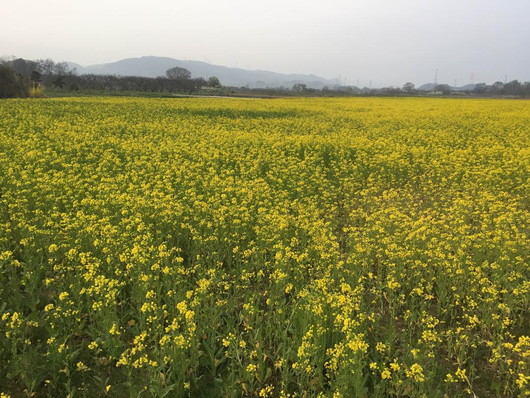 ご近所の菜の花畑。こちらも例年より3週間は早い開花。 |