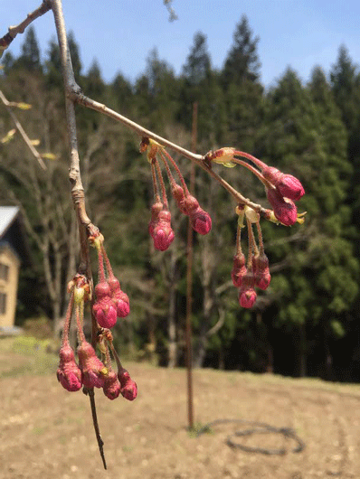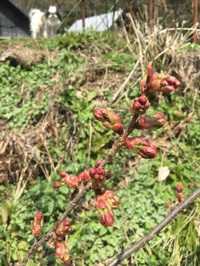 同じときに植えた陽光桜。どちらも間もなく初めての花が開きます。