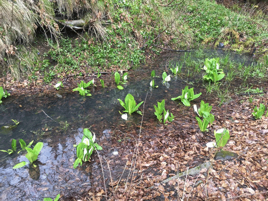 こちらは裏庭の水芭蕉。例年より3週間は早い開花です。