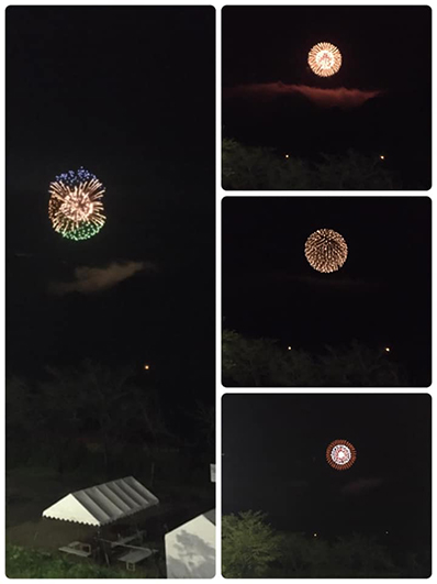 山が邪魔をして花火大会の下半分は見えず、高く打ち上げられて上空に達した花火しか私からは見えなかったのですが、それでも十分に幸せな気持ちにさせられる初秋の花火でした。