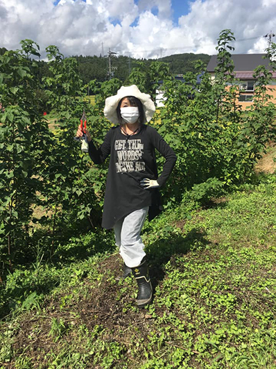 楮の芽かき作業を始める前の私。約2時間の作業で