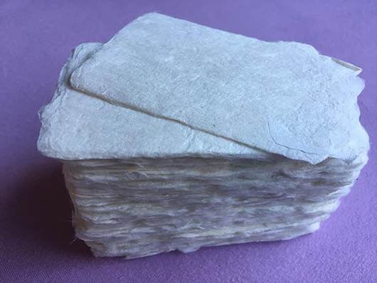 こちらは先日漉いた名刺大の和紙(耳付き)です。 |