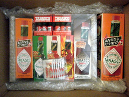 (右)後日グリーソン社長から送られてきたタバスコセット。辛党にとって嬉しいプレゼント! |