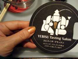 (右)ビール引き換え券を兼ねた紙製コースターが、なかなかステキ