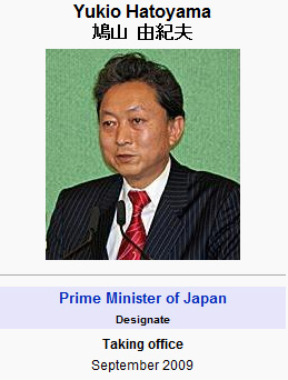 ちなみにこちらはWikipedia英語版(左)と日本語版(右)による鳩山由紀夫氏の紹介(2009年8月