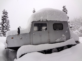 とりあえず自家用雪上車があるから良いようなものの、これがなければ橇(かんじき)を履き、1時間かけて2km先の除雪道路まで歩くしかないでしょうね。いやはや。