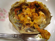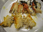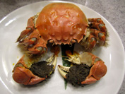 中華街での夕食(上から2列目左端の「上海蟹」が→その右の写真では既に解体されています(笑)) |