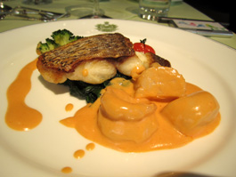 今年も私は魚料理をお願いしました。飲み物はシャンパンと赤ワイン(ピノノワール)