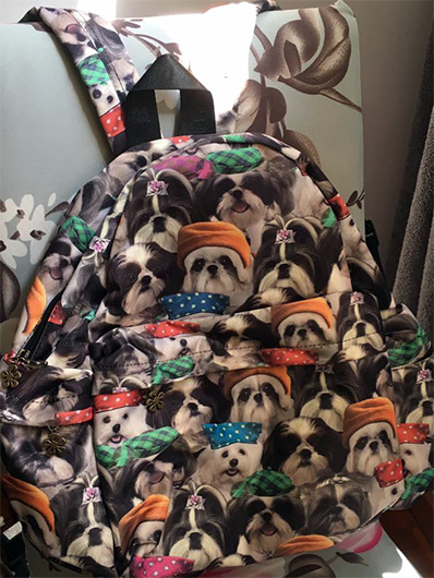 シーズー柄のバッグ。こんなの買っちゃって、