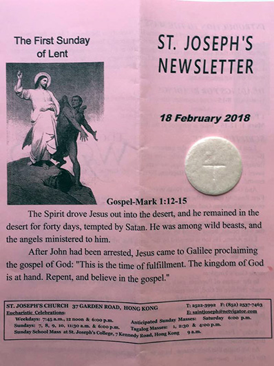 これに先立つ2月14日は「灰の水曜日」でしたが、香港では新年の準備とぶつかってしまったため、遅れ馳せながら今日になって額に黒い灰で十字架を書いていただく儀式が執り行なわれていました(本来は灰の水曜日に実施)。