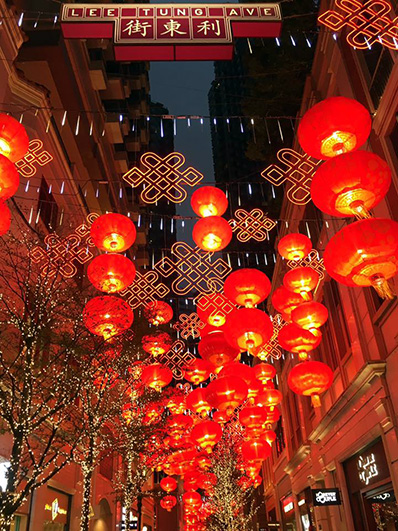 どこもかしこも赤い提灯で賑やかな香港の街。