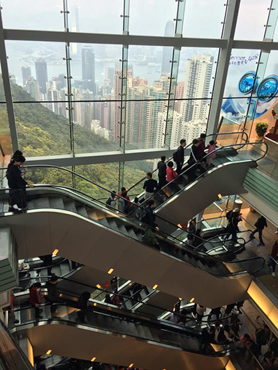 ヴィクトリアピークの上に発つ建物のエレベータから