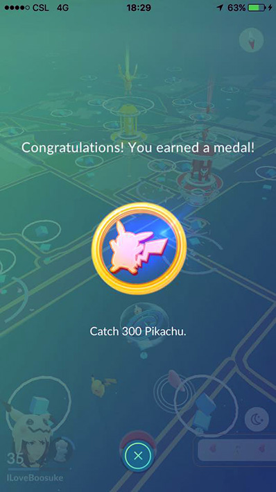 贈られるメダル。ポケモンGOプレイヤーにしか