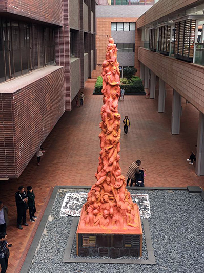 建物と建物のあいだにそびえる不思議な彫刻。 |