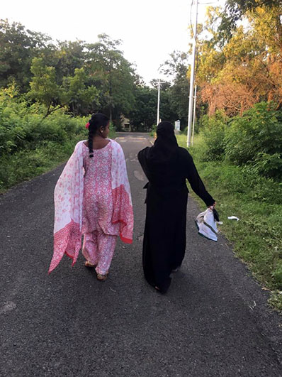 写真の女の子たちはヒンドゥー教徒とイスラム教徒ですが、毎朝仲良くこの小道を一緒に連れ立って職場へ向かっていました。