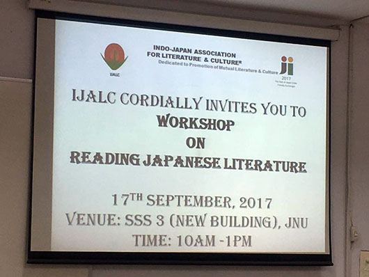 2日目の日本文学朗読・解説セッション(ジャワハルラール・ネルー大)。