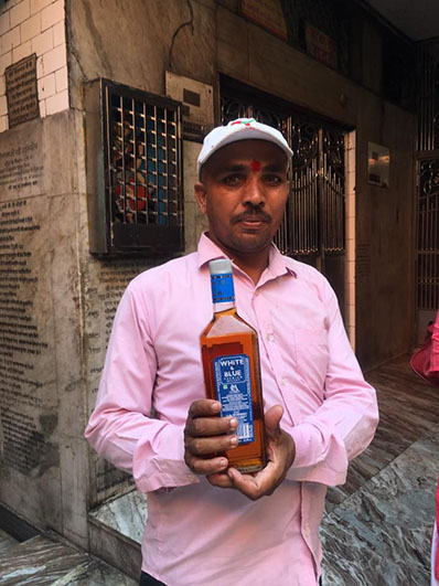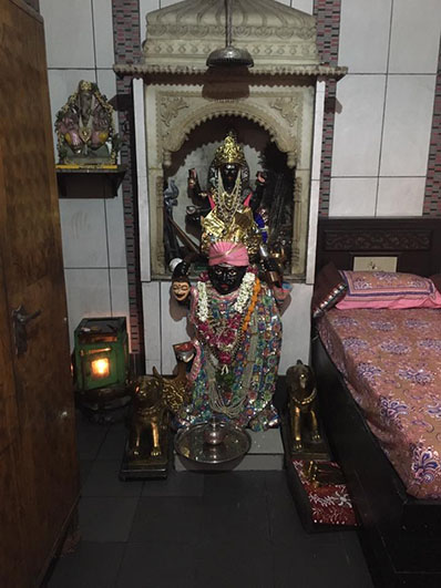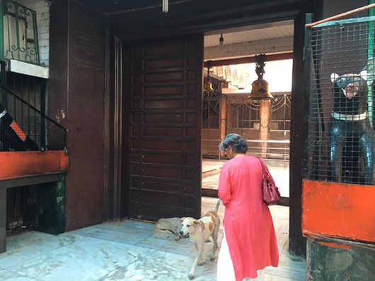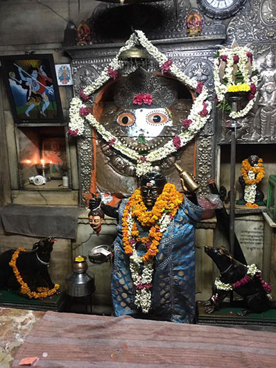 乗り物は黒い犬とされ、寺院の入口には狛犬ならぬ黒犬が。