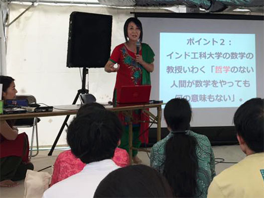 トーク中のひとこま。インド工科大学の数学の教授いわく