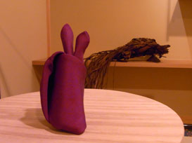 袱紗(ふくさ)を畳んで即興でウサギを折ってみました。その先にはなんとカメの置物が! |