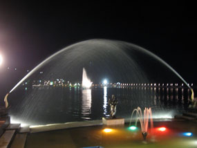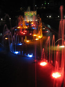 クリシュナラジャ・サガール湖畔の公園にて。ライトアップされた噴水が幻想的なムードを醸し出している |
