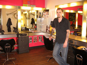 (左)700ルピーのカット (右)'SQUEEZE'のカリスマ美容師(?)ことケヴィン君