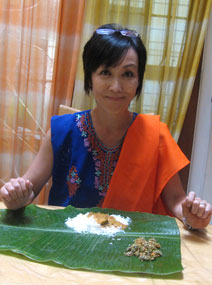 チャンドラセカール監督のご自宅で。監督と話し込んだり、バナナの葉に盛られたランチをいただいたり