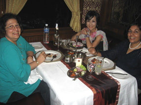 打ち上げにと訪れたレストランで、左からダイアナ、私、ダイアナの友達のターヤ |
