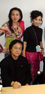 2枚目:先生と私(2002年開催の日本文化デザイン会議にて)。3枚目:先生と私(古希のお祝いパー