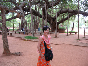 (左)海辺の街だけあってフィッシュカレーが美味しかった (右)巨大なバニヤンの樹