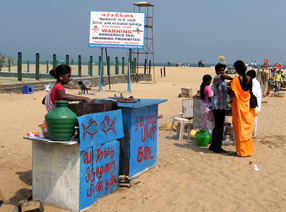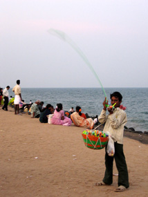 言われた。見料は20ルピー(約60円) (右)物売りの少年(ポンディシェリーのビーチにて) |
