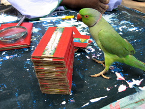 おじさんは、アシスタントのオウム君にカードを選ばせて客の運命を占ってくれるのだが、オウム君はなかなかの芸達者で、おじさんからの質問に対してキーキー鳴きながら相槌を打ったりするのだ。これで見料10ルピー(約30円)は安すぎる!