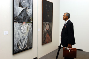 今回の絵画展には、インドの現代作家による作品120点が並び、お蔭様でまさに日印文化交流史上最大規模の現代絵画展となったわけですが、作家の顔ぶれも93歳のM.S.フセインやS.H.ラーザといった大御所から、デビューしたての若い作家まで多岐にわたるものとなりました。
