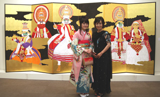 『カタカリ金屏風』をバックに、シドニーから一時帰国中の