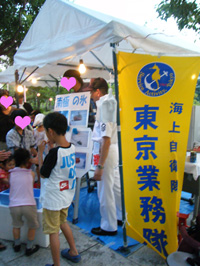 (左)物販のセクションで、南極の氷を触らせてくれていたのは海上自衛隊東京業務隊