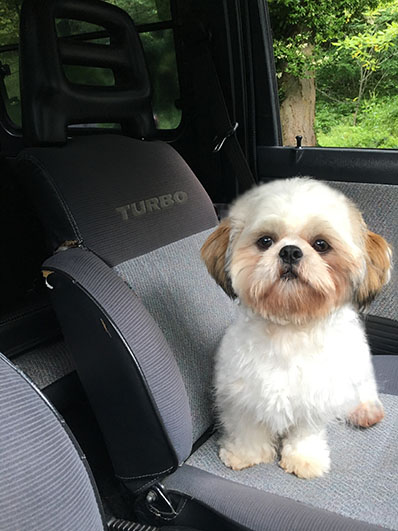 気がついたらちゃっかり自分から助手席に乗っていたクースケ氏。 |