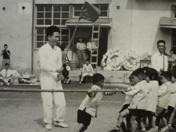 保育園の運動会で旗を振り応援してくれた父 |