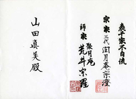 先日、茶道表千家不白流の御家元から唐物點の許状が届きました。