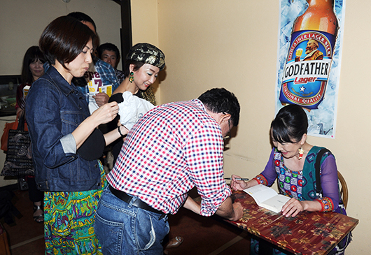 皆さんが「記念にサインを」と言ってくださったので、ミニサイン会を……