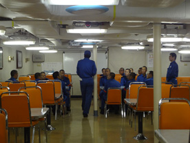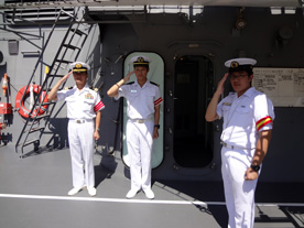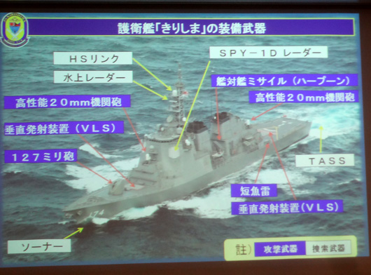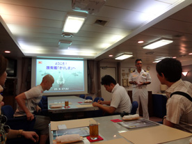 迎えてくださいました → 士官は白い靴、下士官は黒い靴だそう → 艦長によるレクチャータイム