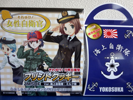 [左上より時計回りに] 売店では、萌え系イラスト入りクッキーその名も「それゆけ!女性自衛官 海上