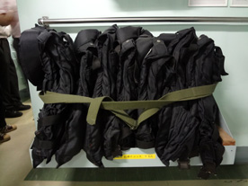 [左上より時計回りに] 食堂 → 朝雲新聞と自衛隊スポーツ新聞 → 霧島神社 → 防弾チョッキ